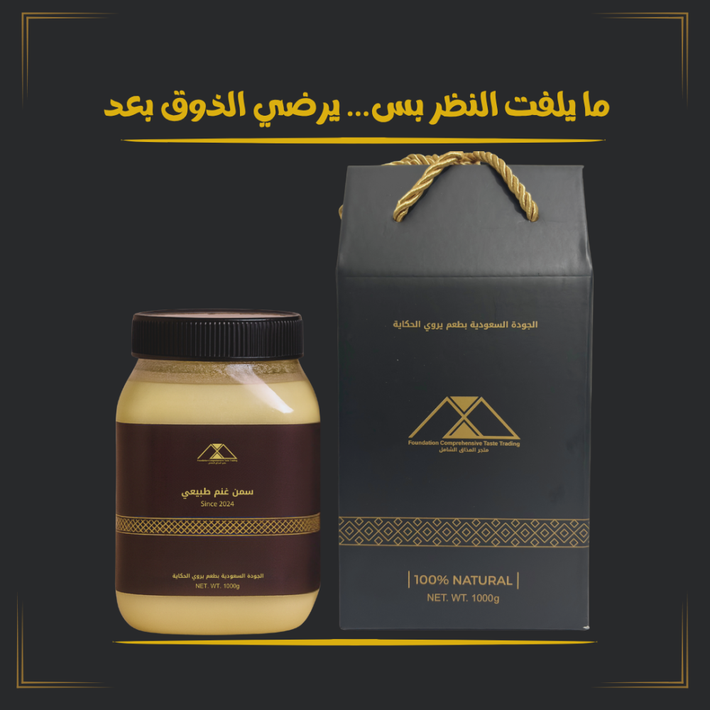 السمن اللي نقدمه 100% طبيعي، ومعه ضمان ذهبي من مؤسستنا، يعني ما يحتوي على أي إضافات صناعية أو مواد حافظة. كثير من السمن المتوفر في السوق يحتوي على مكونات غير طبيعية تضر بالصحة. سمن الغنم الطبيعي يضمن لك نقاء تام وصحة أفضل لك ولأفراد عائلتك!